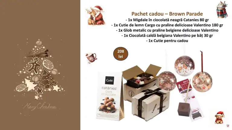Sărbătorile sunt momentul perfect pentru a întări relațiile de business. Alege coșuri cadou corporate de Crăciun 2025 cu ceaiuri festive, ciocolată artizanală, biscuiți de iarnă și accesorii rafinate. Pachetele noastre sunt gata de oferit – ambalate elegant, cu tematică sezonieră.