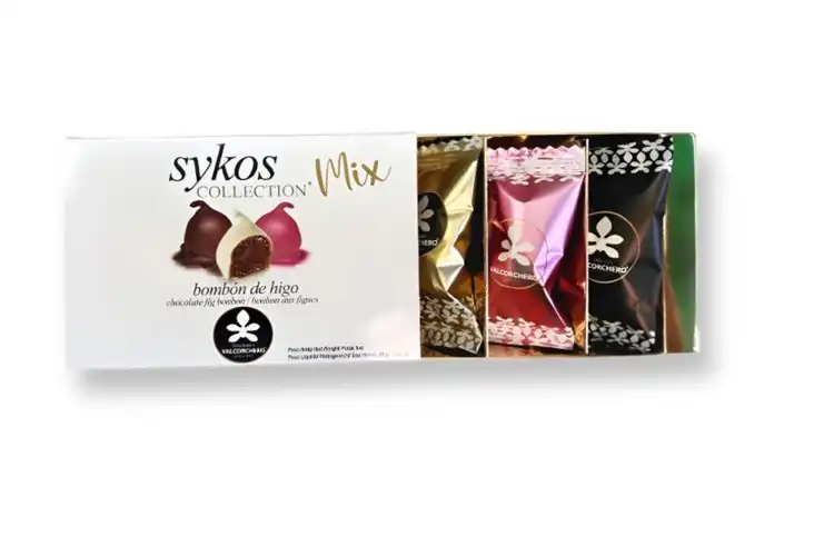 Descoperă rafinamentul desăvârșit al Smochinelor în ciocolată Sykos Valcorchero, o creație deosebită din Colecția Sykos. Fiecare smochină este atent selectată manual, apoi umplută cu o delicioasă cremă de alune și învelită într-un strat subțire de ciocolată fină, fie albă, fie rubin, ce oferă o explozie de arome la fiecare mușcătură. Această colecție unică este rezultatul pasiunii și măiestriei ciocolatierilor de la Bombones Valcorchero, care folosesc doar ingrediente de cea mai bună calitate.