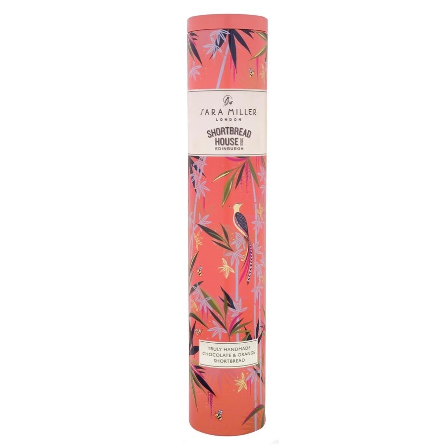 SARA MILLER SHORTBREAD BISCUITI SCOTIENI CU UNT, CIOCOLATA SI PORTOCALA prezentata intr-o cutie uimitoare de 250 g, care contine doua pachete cu 10 biscuiti taiati manual.
