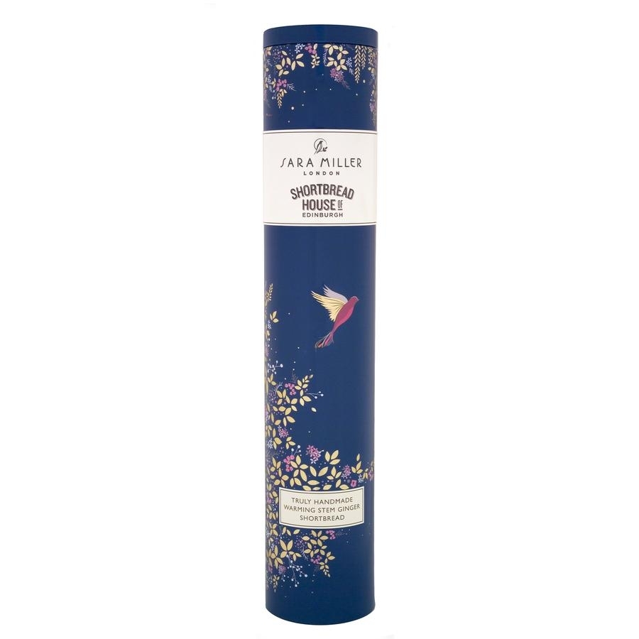 SARA MILLER TINS WITH GINGER 250G SHORTBREAD BISCUITI SCOTIENI CU UNT SI GHIMBIR sunt prezentati intr-o cutie metalica uimitoare, care contine doua pachete cu 10 biscuiti taiati manual.