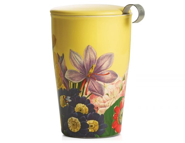 CANA KATI SOLEIL din ceramica, cu capac si infuzor din otel inoxidabil. Construcția inovatoare cu pereti dubli menține ceaiul fierbinte și paharul confortabil de ținut în mână. Puneți capacul în timp ce se infuzează ceaiul. Când ați terminat, scoateți capacul și utilizați-l ca tavă pentru infuzor.