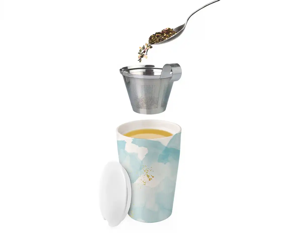 Cana Kati din ceramica cu pereti dubli si infuzorul integrat din otel inoxidabil.