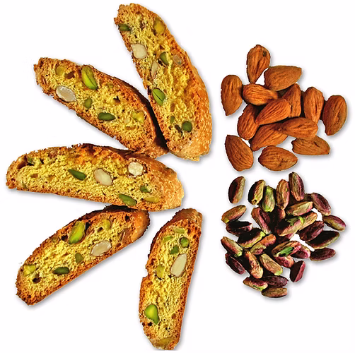 Descopera gustul autentic italian cu biscuitii artizanali Cantucci Sfizio cu fistic si migdale. Crocanti, aromati si facuti cu grija, acesti biscuiti imbina perfect notele delicate de migdale cu savoarea fina a fisticului, oferind un rasfat simplu si elegant in orice moment al zilei.