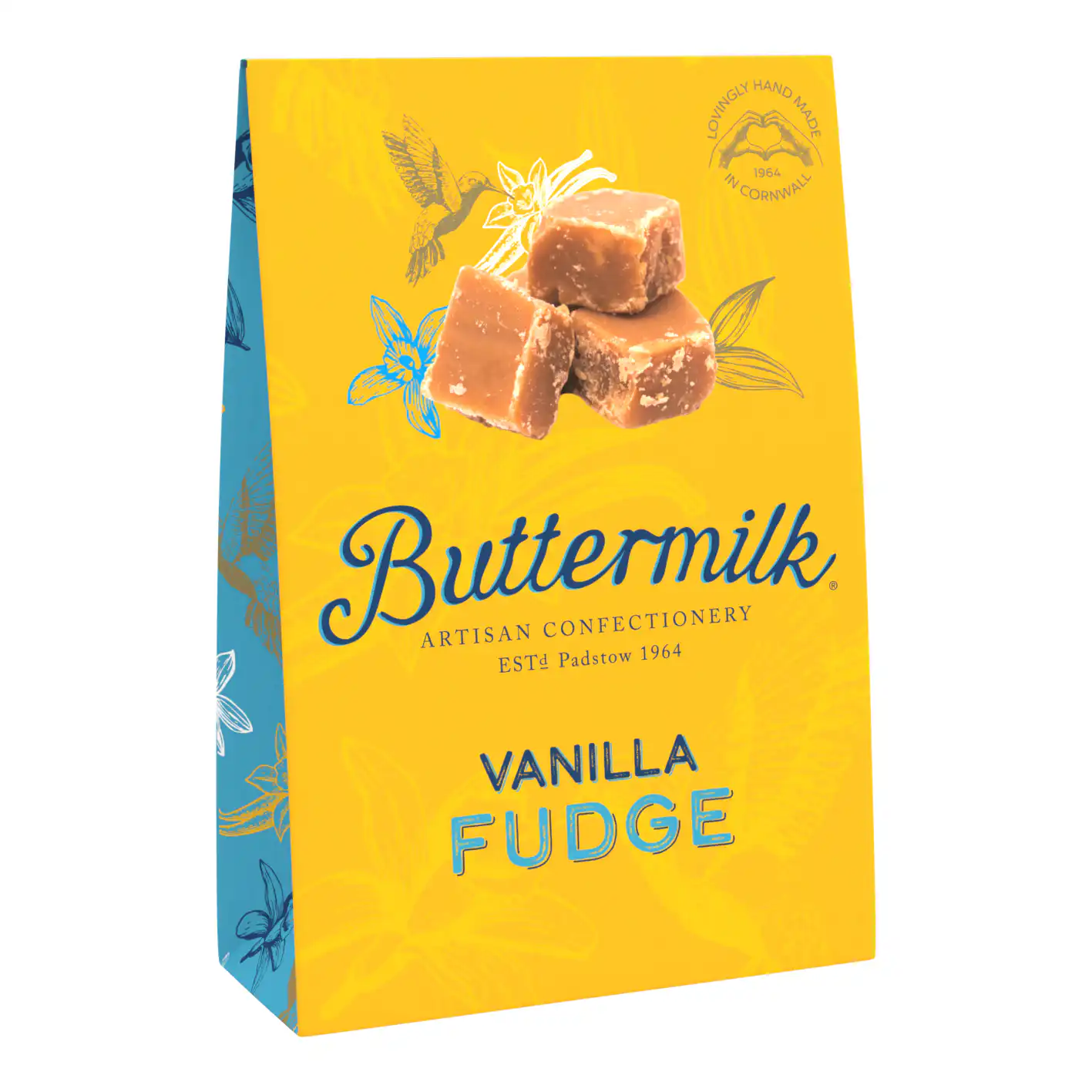 Buttermilk, un brand artizanal cu tradiție din inima Cornwall-ului (Marea Britanie), este renumit pentru dulciurile sale cremoase, lucrate cu grijă și pasiune din 1964. Fudge-urile lor sunt apreciate pentru textura moale și bogată, iar fiecare rețetă reflectă o combinație atentă de ingrediente de calitate și inspirație modernă.