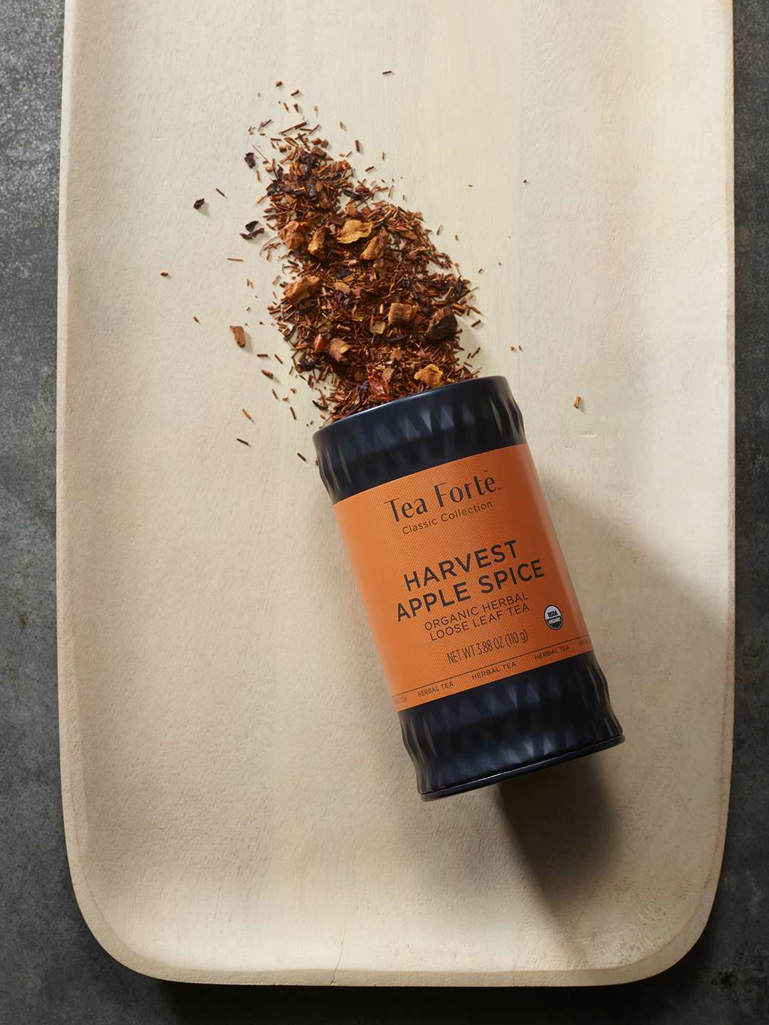 Harvest Apple Spice – o infuzie fara cofeina inspirata de gustul cidrului cald de mere, imbogatita cu note subtile de fructe și stejar.