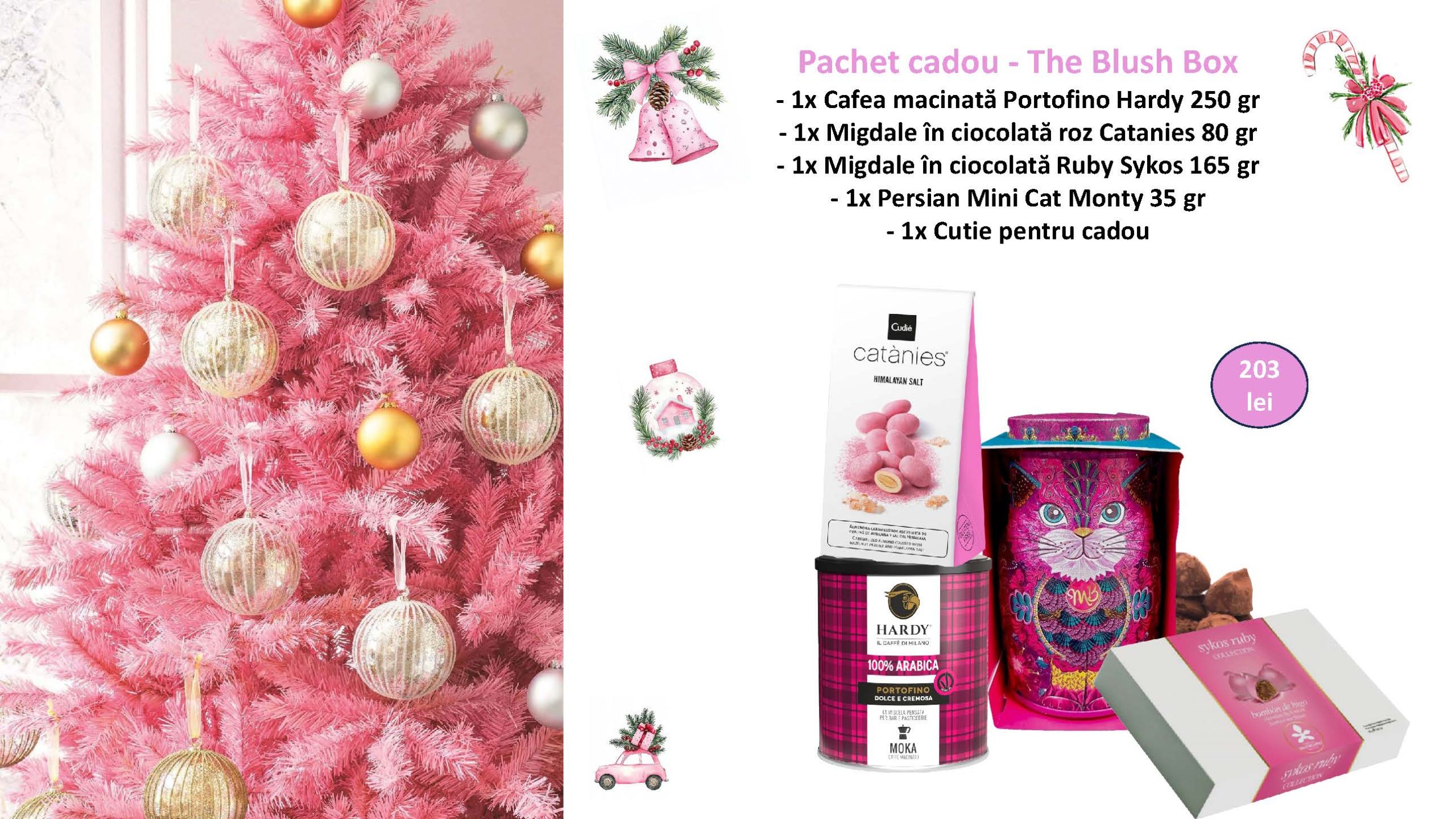 „The Blush Box” este un cadou gândit pentru a oferi bucurie din prima clipă. O colecție atent aleasă de bunătăți și produse cu stil, ambalate într-o cromatică subtilă și elegantă. Este acel gest care îmbină rafinamentul cu simplitatea, perfect pentru sărbători, mulțumiri, aniversări sau pur și simplu… pentru a face ziua cuiva mai frumoasă.