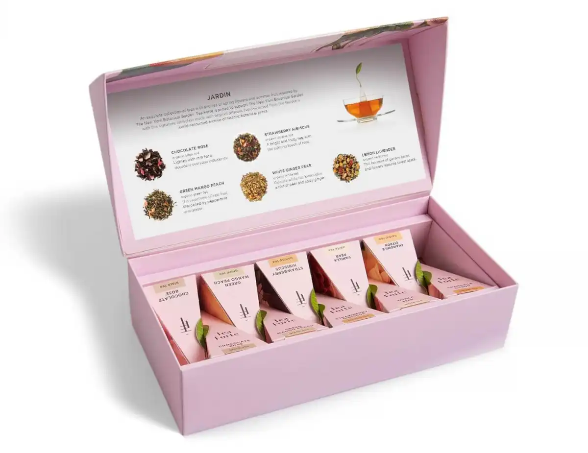 Colectia ideala pentru cunoscatori si pasionati de ceai, Colectia Jardin contine 5 arome de ceaiuri organice recunoscute pentru beneficiile pe care le aduc sanatatii. Petite Ribbon Box pune la dispozitie cate 2 arome din fiecare sortiment.