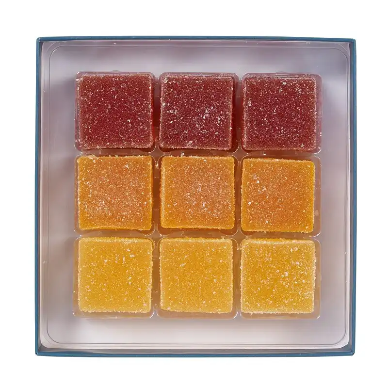 Savurează fiecare jeleu Confidas și lasă-te purtat de aromele exotice ale fructelor tropicale, într-o experiență delicată și sofisticată, perfectă pentru momente de răsfăț sau cadouri rafinate.