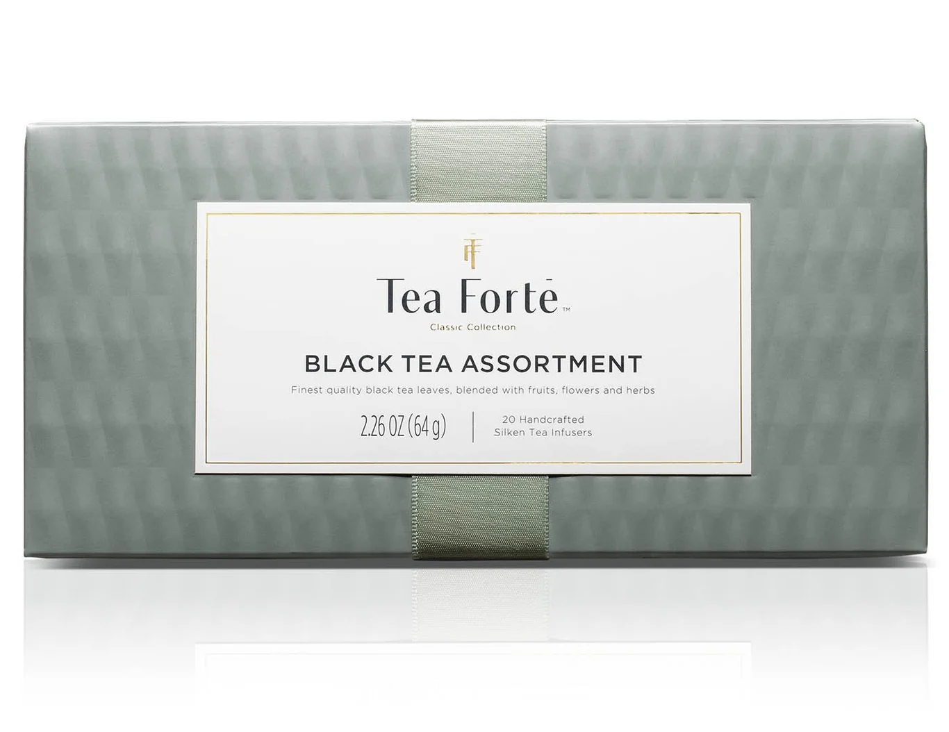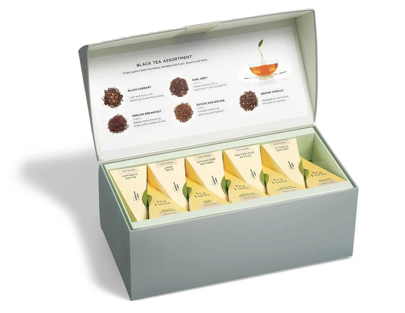 Cele mai fine frunze de ceai negru, amestecate cu fructe, flori și ierburi. Cutia cu 20 de piramide de ceai Black Tea Assortment conține 20 de piramide de ceai, câte patru din următoarele amestecuri de ceai negru: Black currant, Earl Grey, English Breakfast, Estate Darjeeling și Orchid Vanilla.
