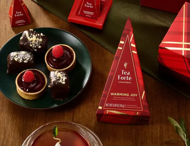 Patru infuzii sub forma de piramida reunite sub un ambalaj fermecator. Ideal pentru a fi agatat in bradul de sarbatori sau pentru un mic cadou de sezon.