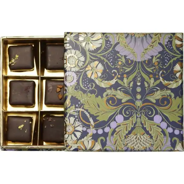 Cutia rotundă combină armonios aspectul elegant cu savoarea pralinelor belgiene de calitate superioară. 9 delicii atent lucrate oferă un moment de plăcere rafinată și se potrivesc perfect pentru a împărtăși bucuria Crăciunului sau a altor ocazii speciale.