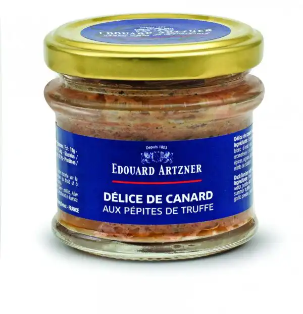 Ingrediente: Ficat de porc, carne de rata (25%), grasime de porc, albus de ou, apa, amidon de cartofi, ulei de masline cu trufa neagra (2%), trufe albe (1,1%), sare, condimente, ceapa, usturoi , conservant: nitrit de sodiu.