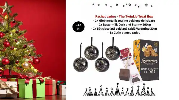 The Twinkle Treat Box este o explozie de gustări festive, ambalate cu drag și presărate cu sclipiri de bucurie. Dulce, surprinzătoare și 100% de oferit cu zâmbet.