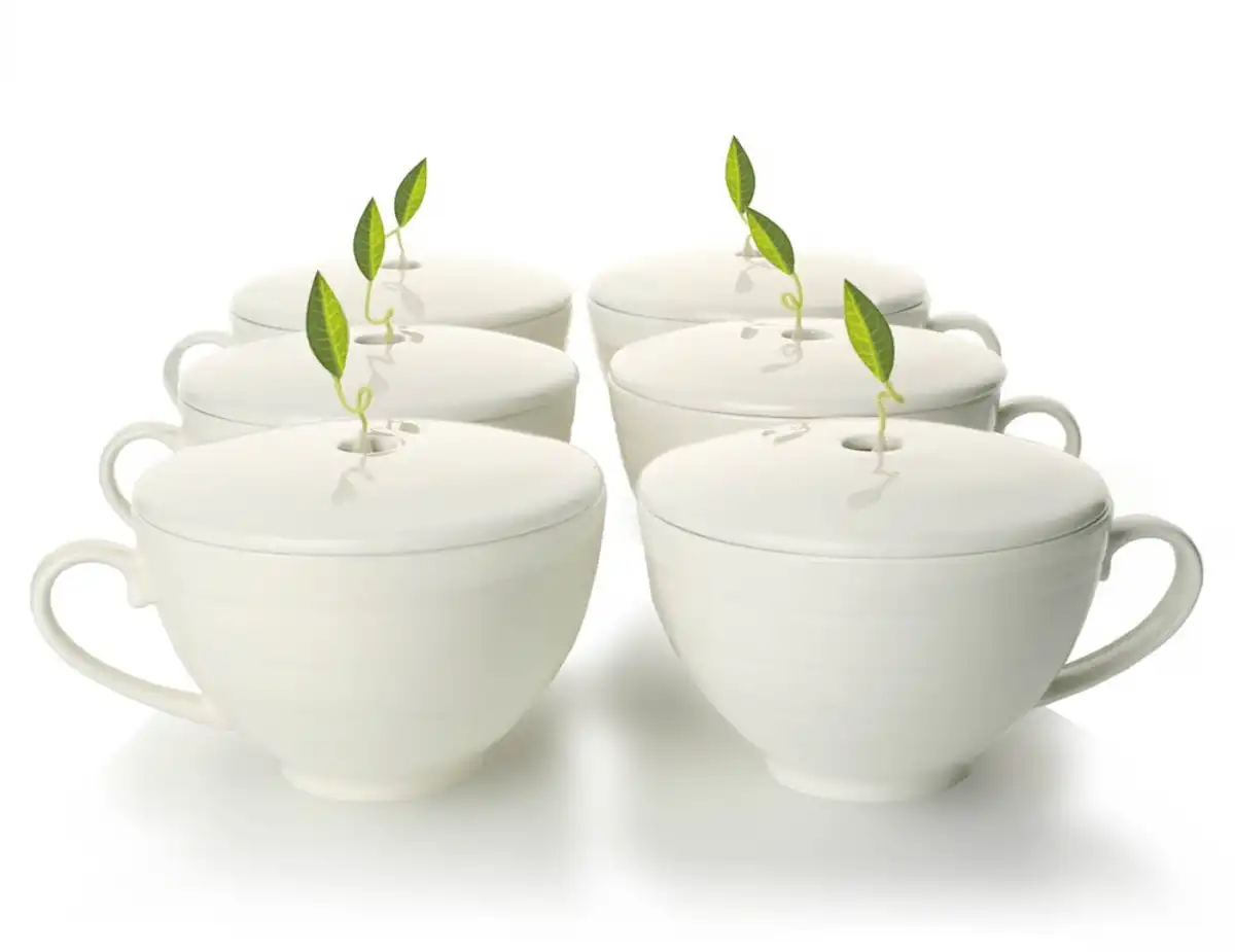 Tea Forté lanseaza un set de cesti clasice Café in seturi de sase. Perfect pentru setarile de birou, petreceri sau urmatorul tau mare eveniment. Acest ansamblu elegant de ceai de portelan include un capac personalizat care mentine ceaiul fierbinte in timpul prepararii. Capacul se transforma usor in farfurie.