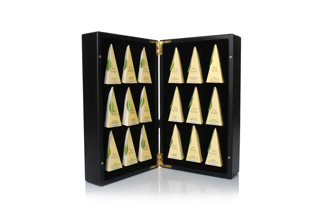 Tea Book Gift este o carte perfecta pentru iubitorii de ceai, continand toate cele 18 tipuri de ceaiuri de la Tea Forte. Descoperiti o gama variata de arome, de la ceaiuri verzi delicate la ceaiuri negre puternice si amestecuri unice de plante si fructe. O modalitate excelenta de a va bucura de varietatea ceaiurilor Tea Forte si de a gasi noul dvs. favorit. Sortimentele de ceai sunt: