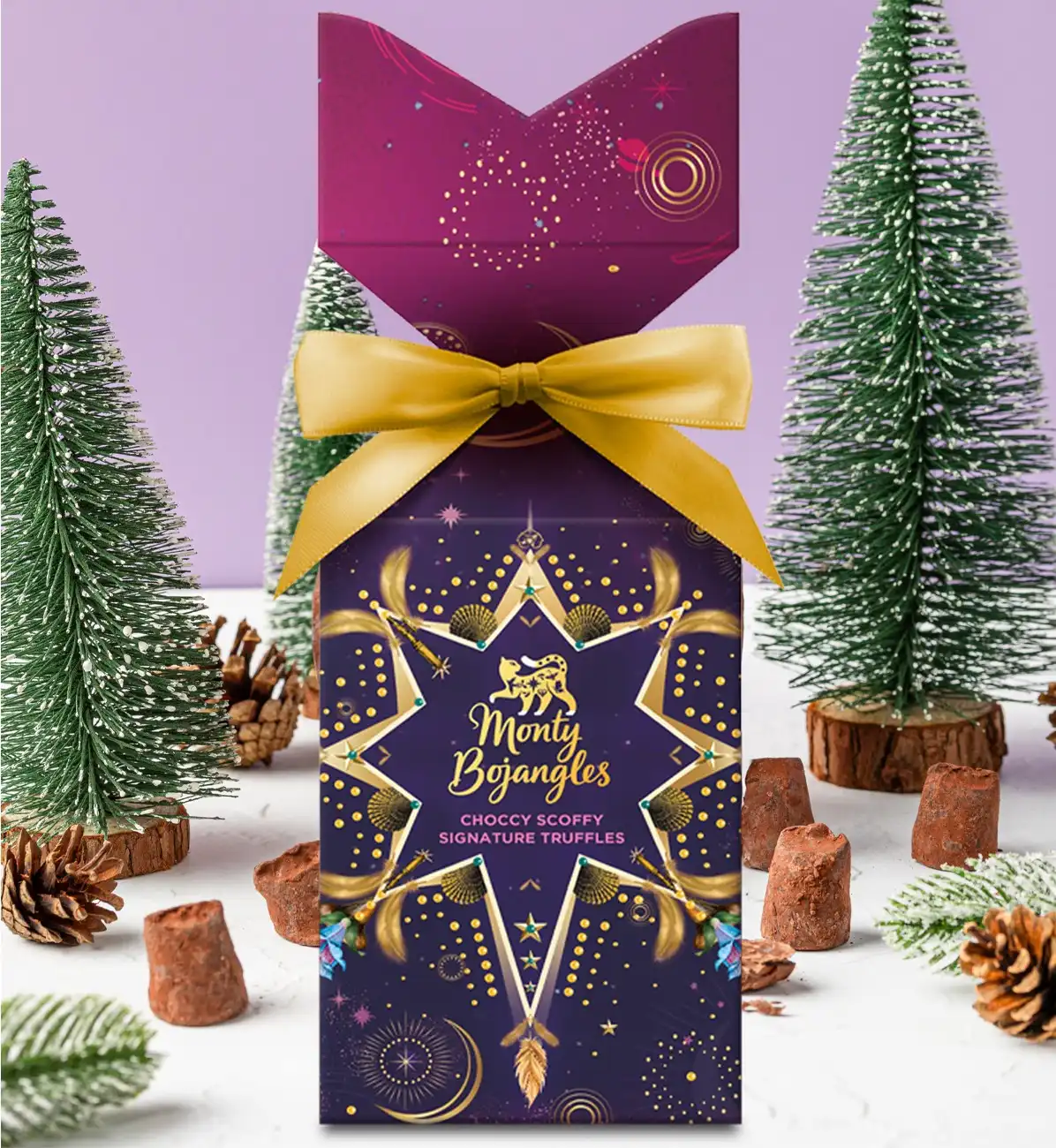Monty Bojangles este un brand britanic de lux specializat în trufe de ciocolată gourmet, recunoscute pentru combinații îndrăznețe de arome, design excentric și ambalaje artistice.