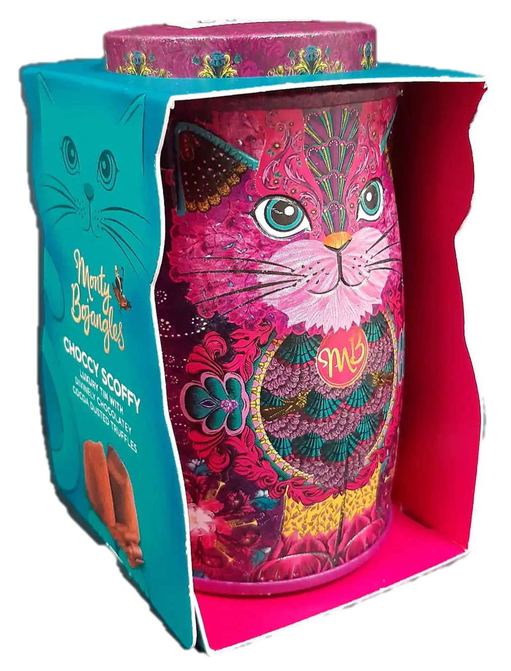 – Nume complet: Monty Bojangles Pink Cat(Choccy Scoffy) Truffles Mini Persian Tin 36g