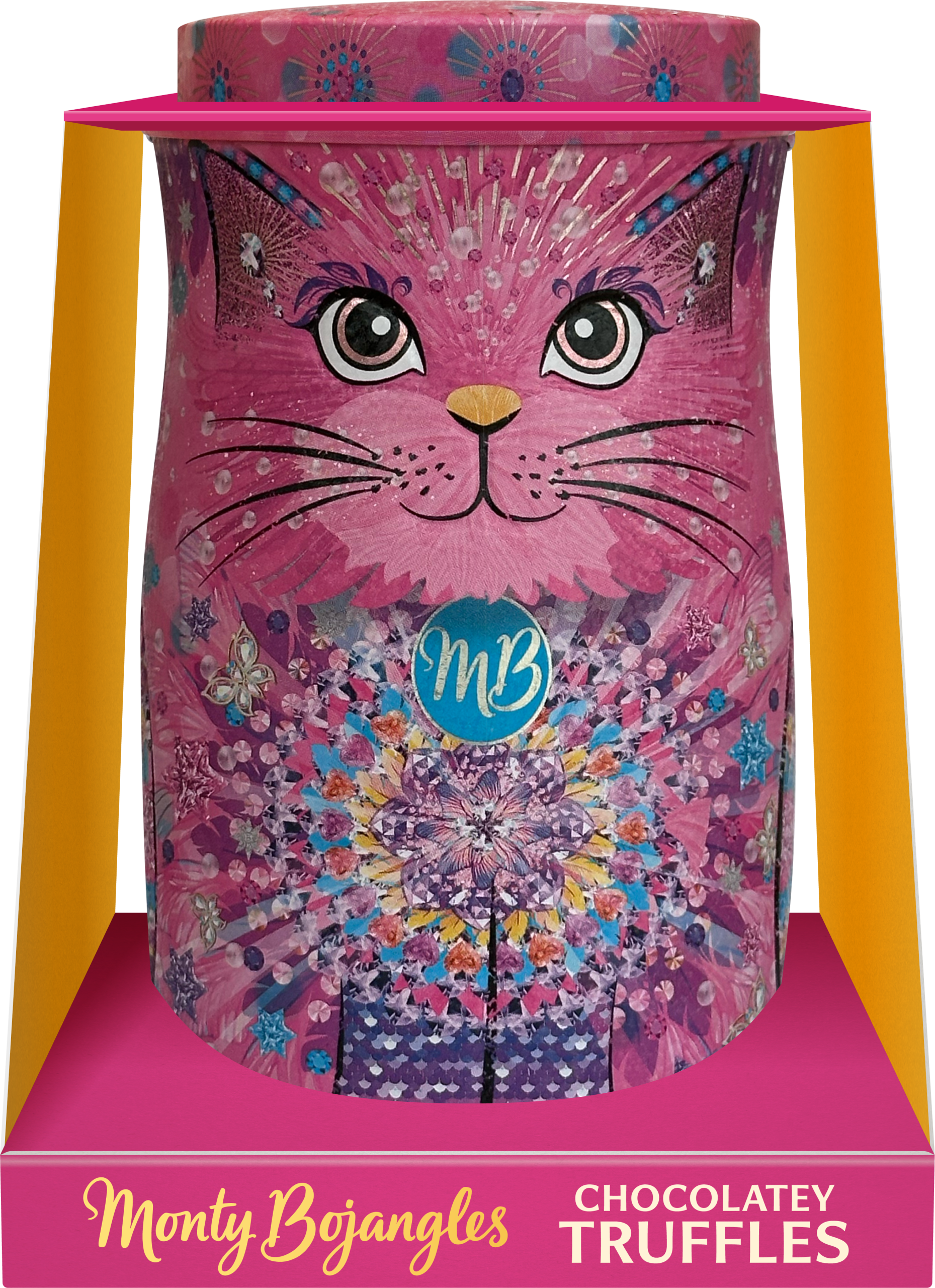 Monty Bojangles este un brand britanic de lux specializat în trufe de ciocolată gourmet, recunoscute pentru combinații îndrăznețe de arome, design excentric și ambalaje artistice.